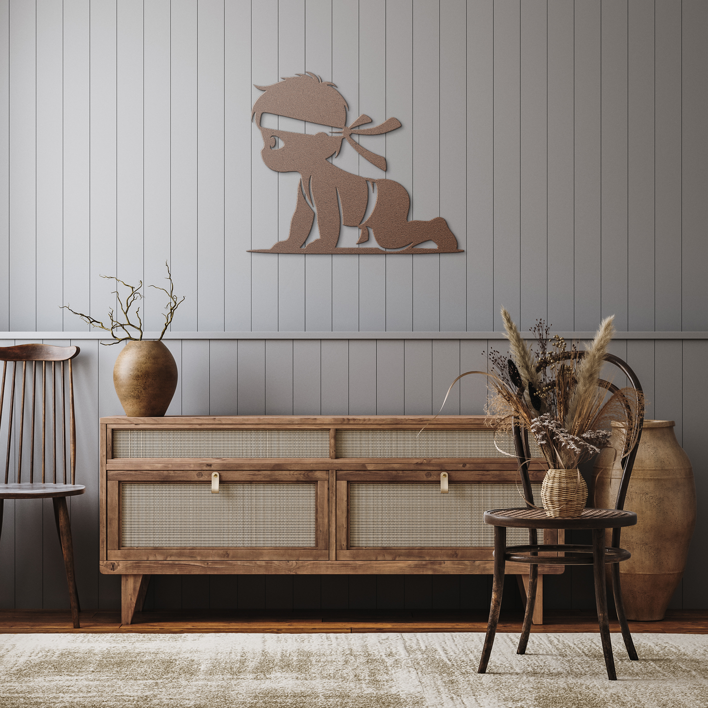 Baby Ninja Metal Wall Art - Japanese Kids Room Decor